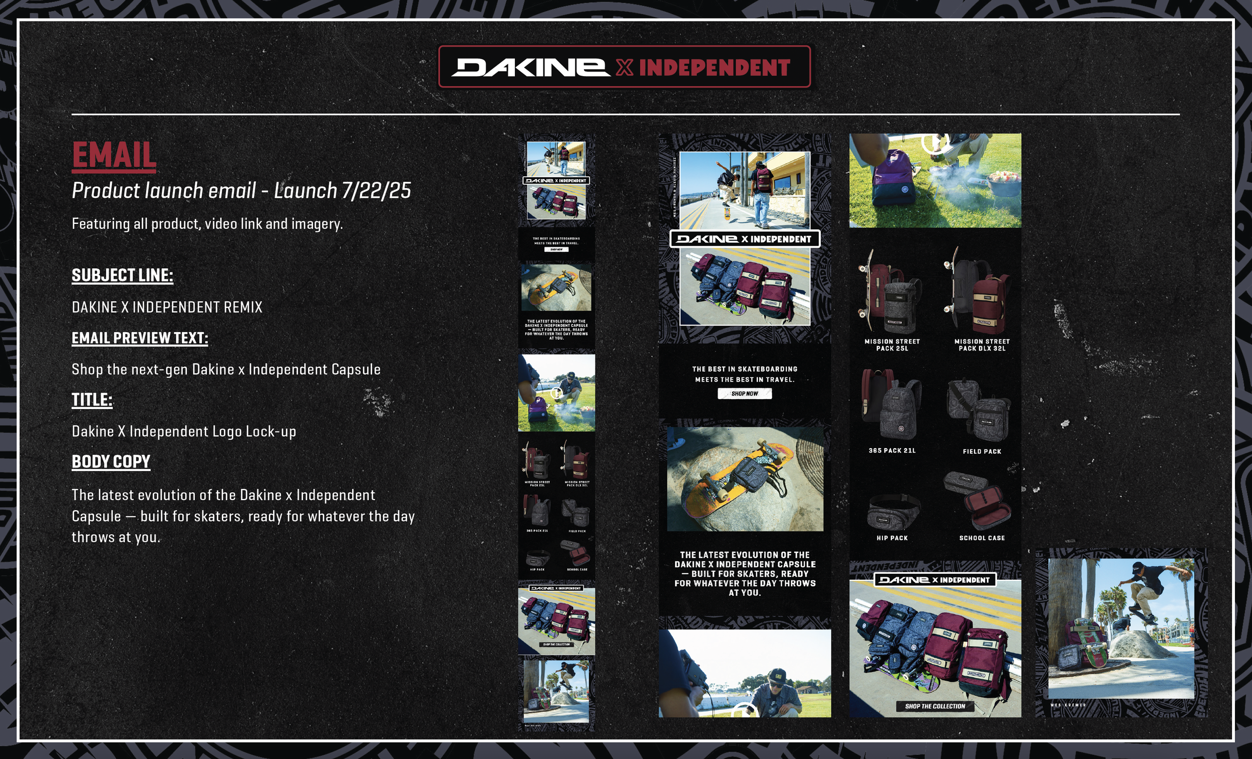 Art Direction of the latest evolution of the Dakine X Independent capsule - built for skaters, ready for whatever the day throws at you and your crew.